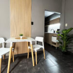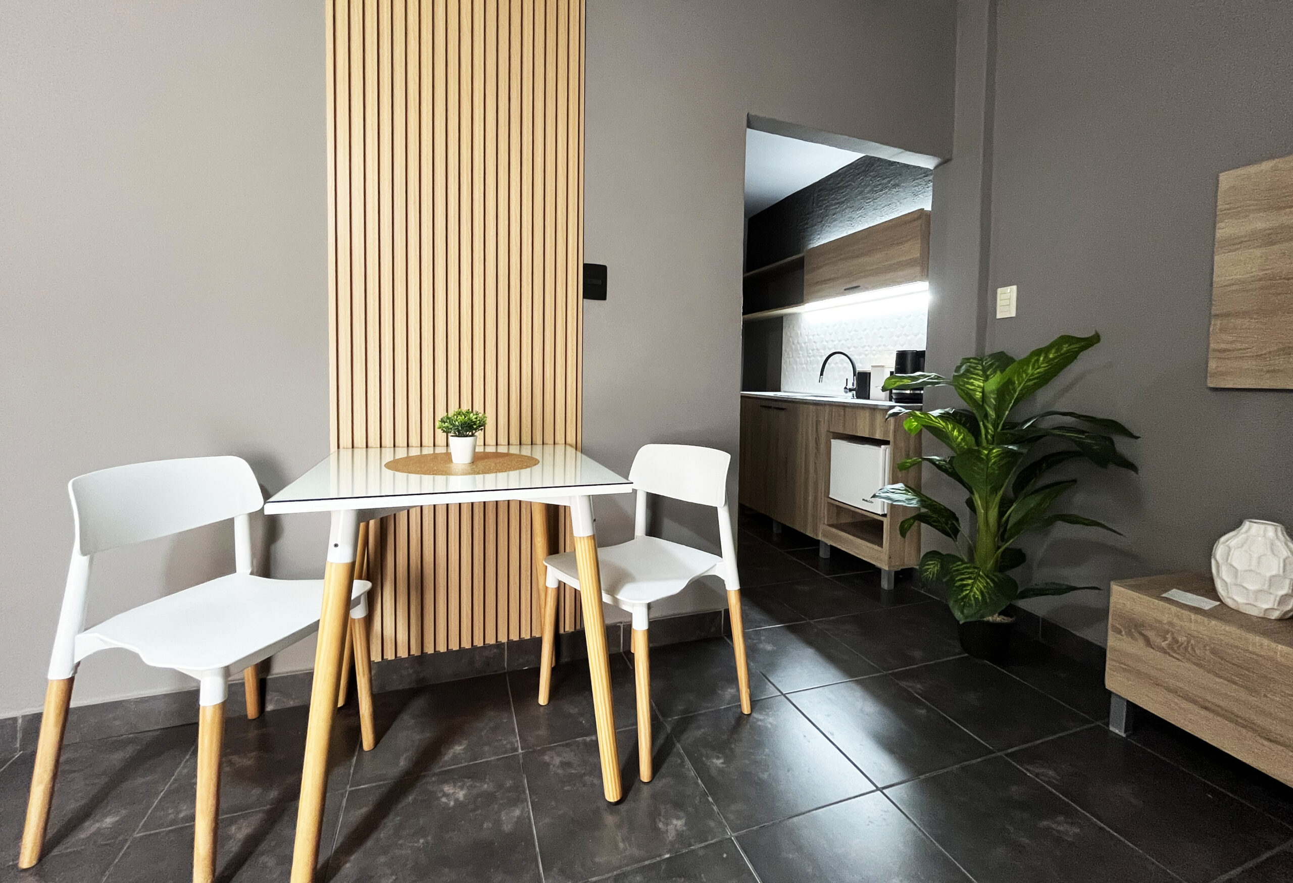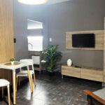 El espacio ofrece un amplio living comedor integrado al dormitorio, creando un ambiente luminoso y confortable ideal para relajarte después de recorrer la ciudad. La cocina moderna y minimalista está equipada para que puedas disfrutar de comidas caseras durante tu estadía.